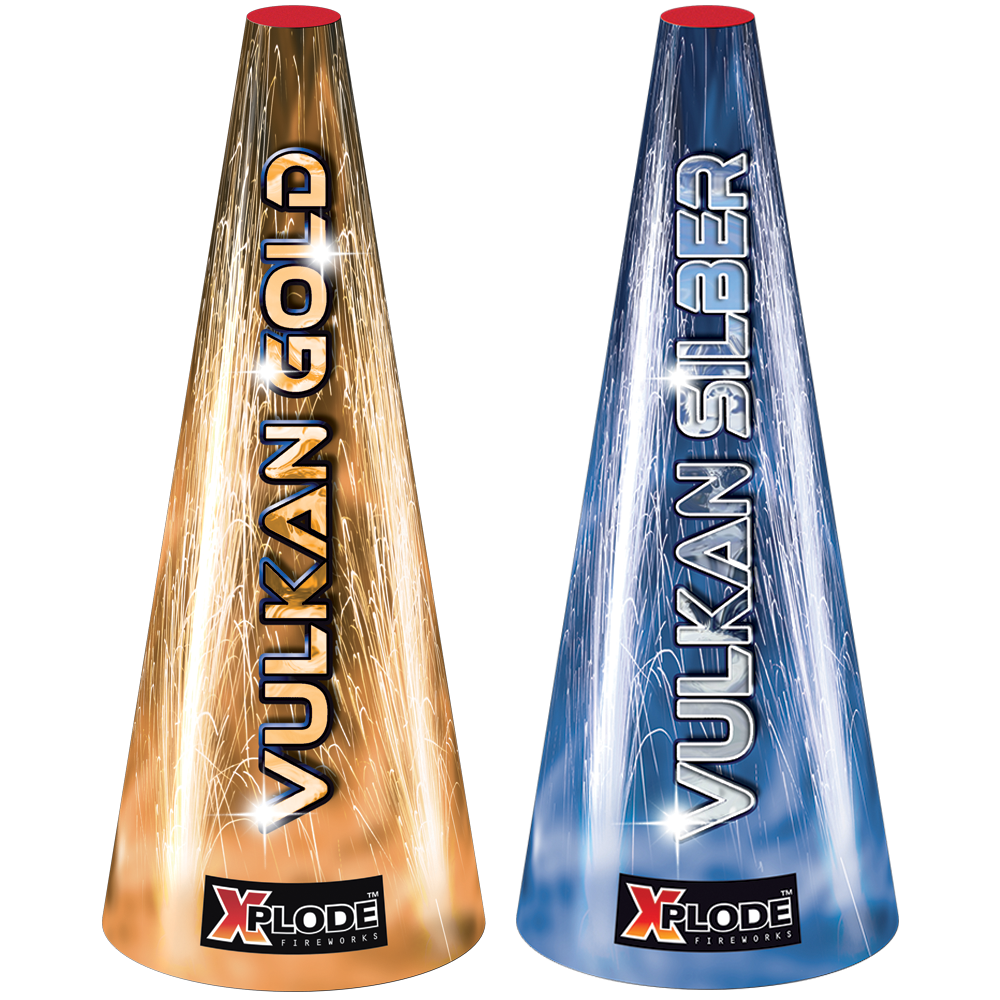 Vulkan, 21 cm hoch mit goldenen oder silbernen Flimmerfunken bis zu einer Höhe von 3 Meter.